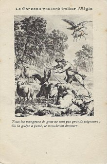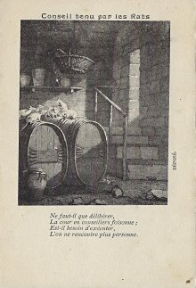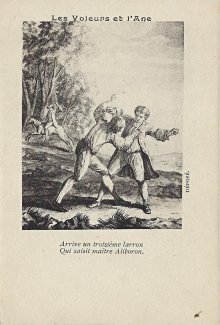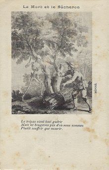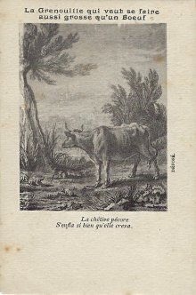 - 1900? Two portrait postcards with black-and-white illustrations and a moral. Illustrations after Oudry and Gheeraerts? €4 from ABC de la C.P.A., Lyon, at the Paris Post Card Exhibition, Jan., '05 and for €3 from St. Ouen, August, '13.