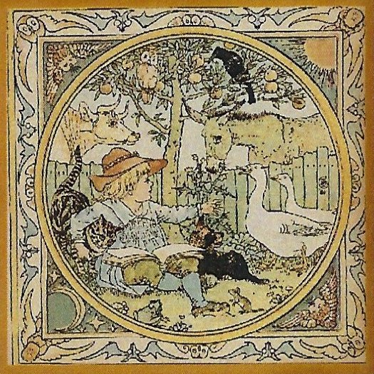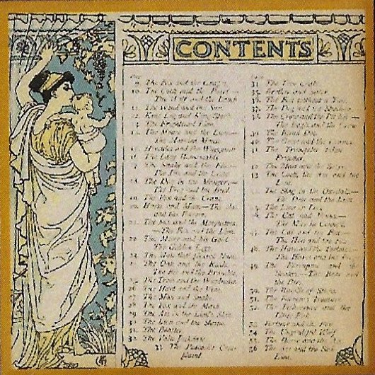 Delightful, exact woodwork! I think Walter Crane would be delighted to see his work carried on this way! The twelve tiles include the front cover and list of illustrations. - Source