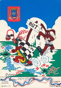 960 "Le Lievre et la Tortue." Ville de Château-Thierry. Imp. Du Centre. Comité des Fêtes de Château-Thierry. About 4" x 6". €4 from Jacky Mabilat, Boutigny sur Essonne, Paris Post Card Exhibition, Jan., '05.