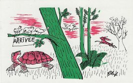 1950? Sixteen of a set (all but the first four of 20?) numbered three-color postcards of La Fontaine's fables, plus extras of #9 and 11. Le Courrier, Laon, France. Villages d'Enfants de France. $77 from Bertrand Cocq, Calonne Ricouart, Sept., '18. Extra oF #5, DW, for €4 from Recto-Verso, Strasbourg, July, '19. 4 further cards for €7 from pier-mont through Ebay, Oct., '21.