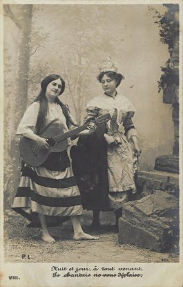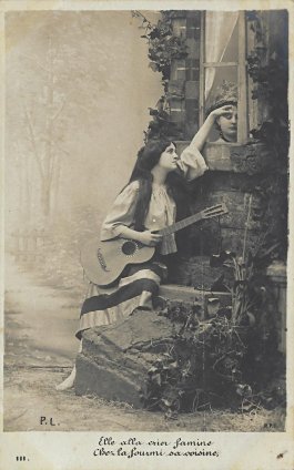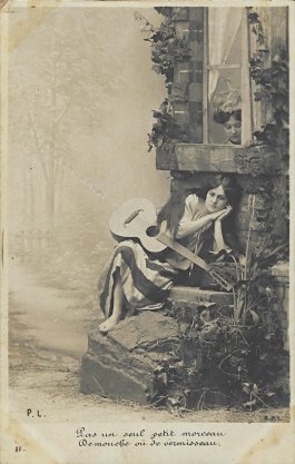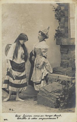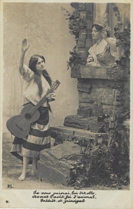 1905? Ten card photographic postcard series of GA, using the whole text of La Fontaine's fable. Numbered I-X. "P.L" and "R.P.I." on each card. $6 each from Bertrand Cocq, Calonne-Ricouart, Sept., '20.