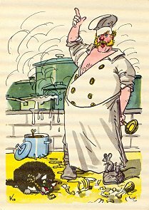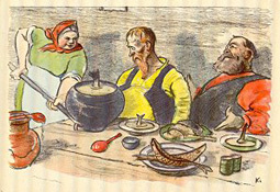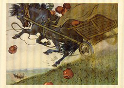 The image for IV 5 gives a clear sense that the three are pulling in different directions (up, down, and sideways); thus at least the former two cancel each other out. The industrious bear is trying to make bowed carriage harnesses in one action; the point is that this sort of work needs patience. Other great images here include the envelope's strong composite image, "The Cat and the Cook" (III 8), and "A Train of Carts" (II 20). - Date