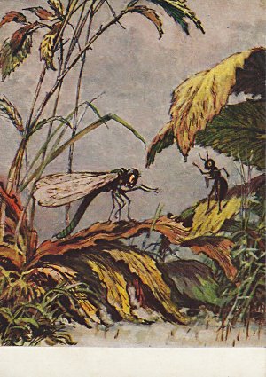 1956 Set of 10 colored Krylov postcard illustrations by M.A. Taranova. $9.99 from dron7770 through eBay, Dec., '05. A second set for $12 from migrace, Ukraine, through eBay, Dec., '11. Another set prior to 2021. Extra copy of WC from Susan Carlson, Dec., '24.