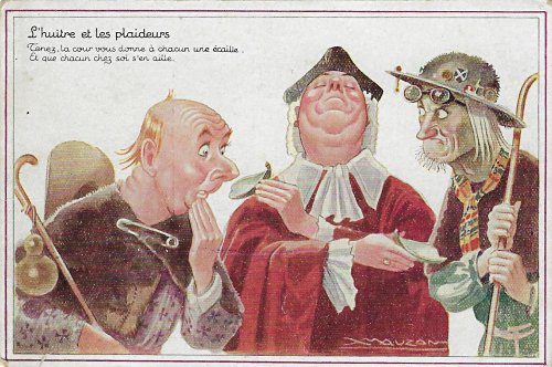 1920? X. Mauzan, "The Oyster and Litigants." €5 from Akpool, Berlin, Sept., '19