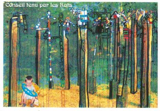 2003 Montmorillon: Deuxieme Salon de l'Image et de l'Écrit: "Les Fables de La Fontaine." 23 numbered postcards out of a series of 50 published in a limited edition of 1000 for this exhibit at Montmorillon, France, June 14-15, 2003. Various artists. $50 from Bertrand Cocq, Calonne Ricouart, France, Sept., '18." Council of Rats" for €2.98 from nutshat through Ebay, June, '22. 23 further cards for €3.50 each from nutshat through Ebay, August, '22.