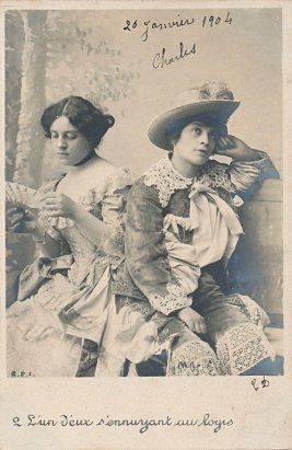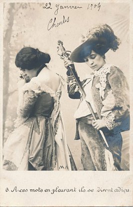 1903? Complete set of ten numbered photographic postcards presenting "Les Deux Pigeons." RPI. $120 from Bertrand Cocq, Callone Ricouart, France, Sept., '18.