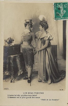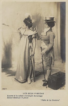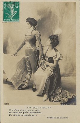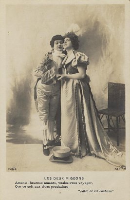 1904? Les Deux Pigeons. Set of 8 numbered photographic postcards by S.I.P. 105/1-8. $5 each from Bertrand Cocq, Calonne-Ricouart, France, Sept., '20.