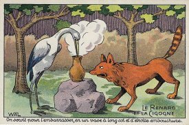 The expression of the angry fox, together with the apparent nonchalance of the stork, makes this an excellent presentation of the fable. I am eager to find more of WAL's work! - Date
