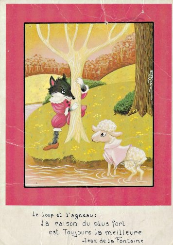 The cuteness of the lamb only underscores the brutality of the moral stated here. There is a message on the verso. - Date