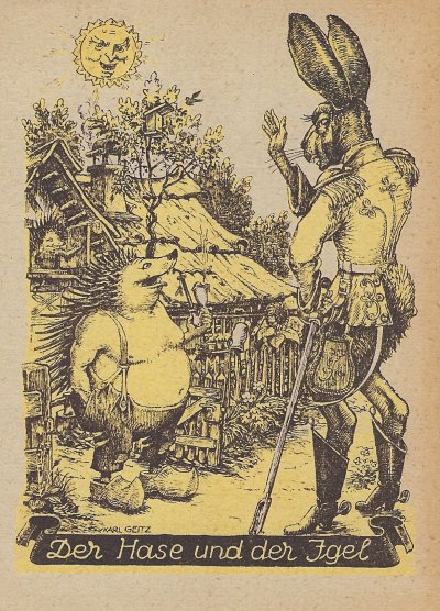 1930? One postcard featuring "Der Hase und der Igel." Karl Geitz. Kunstlerkarte. Betriebs-Nr. E 3756. Verlag: Karl Geitz, Bruchsal. €6 from Akpool, March '