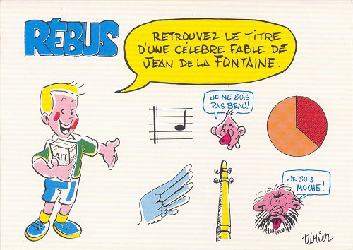 1996? Rebus postcard. A soccer-player with milk in his hand asks "Retrouvez le title d'une célèbre fable de Jean de la Fontaine." The art bears the mark "Turier." Producteurs de Lait de Picardie, Amiens. Imp. Garet, Breteuil. Postmarked from Amiens, Jan., '97. €3 from Gerard Crucy, Yerres, at the Paris Post Card Exhibition, Jan., '05.