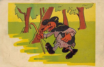 Simple figures, strong colors, and lively scenes make this a good set for children. My favorite here is TMCM. These rats are having fun! For a copy of MM that landed elsewhere in the collection, see "Individual Fable Cards." - Date