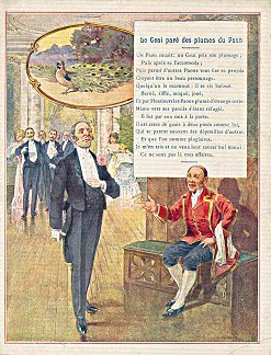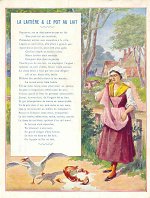 1930? 2 cards presenting scenes from two La Fontaine fables with a "Certificate of Satisfaction" on the back. Just over 7" x 5½". $12 each from Annick Tilly, Clignancourt, August, '01. Also "BF" a gift of Bertrand Cocq, Calonne-Ricouart, France, August, '15. €24 for 4 further cards, including an extra of "Worker and His Sons," from Pierre through Ebay, Feb., '24.