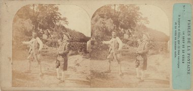 Do I understand correctly that the left-hand figure is the wolf starting to run away? As La Fontaine says, he is still running! I acted too slowly when several stereopticon cards came up at once. This was the only one left! - Date