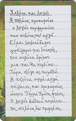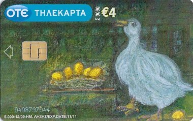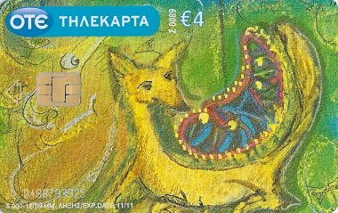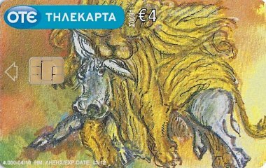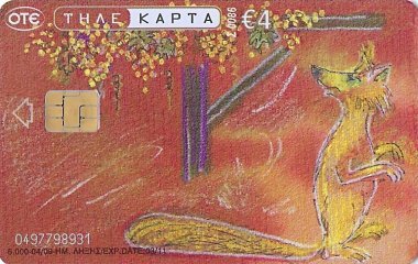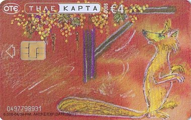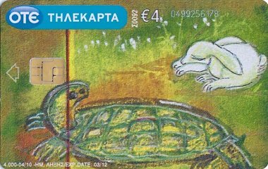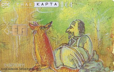 2010 6 Greek telephone cards, each worth €4, each with a fable illustration and a fable text on the verso, out of an apparent set of 12. $28.90 from Nioras Konstantios, Athens, Greece, Jan., '19.