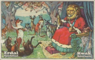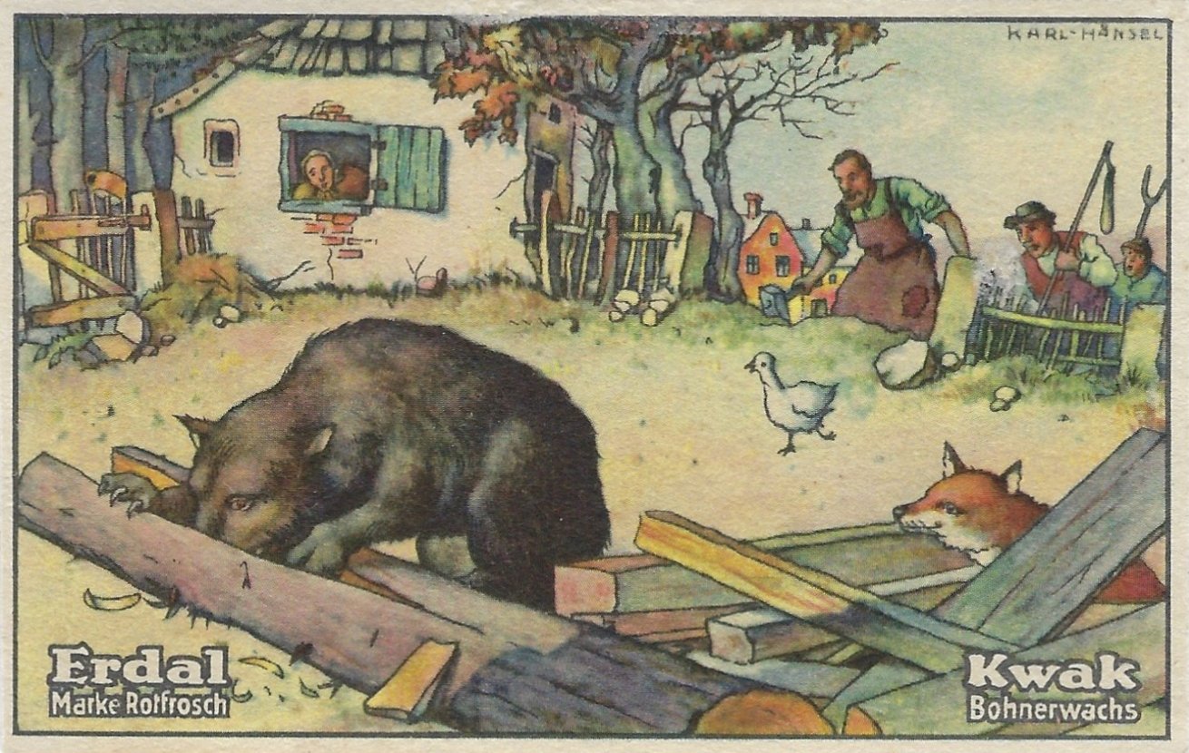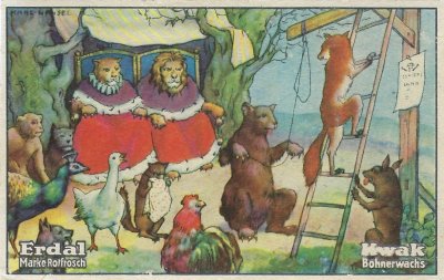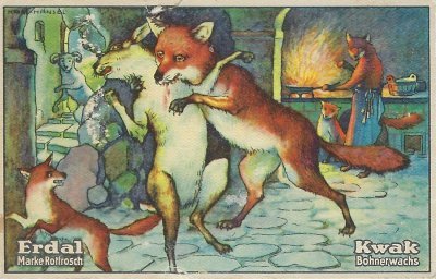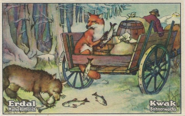 1940? Six card set of Erdal Kwak landscape cards illustrating scenes from Reineke Fuchs. "Serie 55. Deutsche Märchen: Reineke Fuchs." $5.99 from sarmagetia through Ebay, Oct.' 22 Extra set of all but the first card from an unknown source, July, '19.