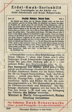 Each card's verso contains a paragraph of the story in prose. In this version, He starts by eating chickens. Next we see Isengrim the wolf profiting from Renard's dropping fish from the angler's cart. The third scene is Renard's trick against Braun the bear, sent to bring him to court. In the fourth scene, Braun and Isengrim are ready to execute Renard but he talks his way out of it by recounting treasure. King Lion forgives him. The rabbit Lampe was to accompany Renard as he starts on his pilgrimage to Rome, but Renard ruthlessly kills him in his home Malepart. In the last scene, Renard conquers Isengrim before the whole court. - Date
