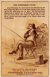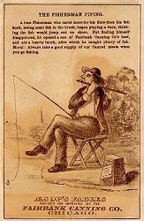 This is one of the most delightful sets I have had the pleasure of pursuing. There is a quirky transformation of each of the traditional fables represented here—all for canned meat! The cards generally show a combination of what looks like a blue and sepia wash. Each card takes the opportunity to draw the obvious moral. The versos of the cards are blank or include one of the following: advertisements for wholesale grocers like Head and Winston in Utica or Charles Hewitt in Des Moine; or price lists for Fairbank meats dried or in cans or barrels. These price lists are dated "Sept. 1st, 1882." When I had seven cards, I thought that there might be eight in the series. Thomas Beckman has been very helpful to me in dealing with this set of cards. When I got my ninth card, Dave Cheadle mentioned to me that there are thirteen in the set. Can I be sure that I have the whole set, especially since thirteen sounds like a strange number for a set? Come to think of it, it's a perfect number for this set! - Source