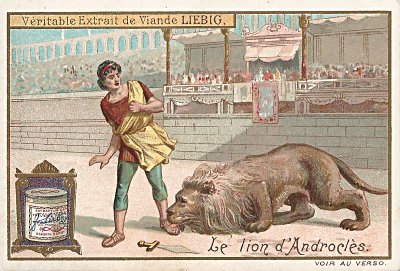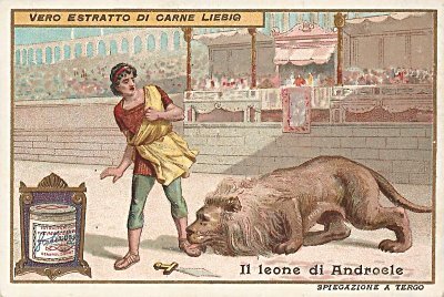 1904 Androcles. Liebig. "Famous Animals." Two copies of the French and one of the Italian, the latter from Joe Cavitt, Sequim, WA, March, '15.