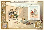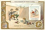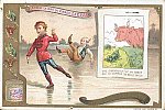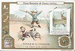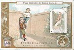 1900 Favole di La Fontaine. Vero Estratto di Carne Liebig. Six cards, each with an animal scene from a fable of La Fontaine attached with a stick-pin to a human scene of children. Sanguinetti #625. Publishers: Liebig Company, Antwerp. £25 from Murray Cards International, Cecil Court, London, August, '97. Extra set for $24 from Pietro Muscara, San Gregorio di Catania, Italy, through Ebay, July, '99.