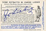 I could afford this set (marked La Fontaine III) but not the other two La Fontaine sets Murray advertises, since I costs £200 (1883) and II £600 (1896). The face of each card includes a number of elements: "Vero Estratto di Carne Liebig" across its top; two pictures, one set into the other; a cameo of a key character in the lower right; heads of other fable characters along the left side over a can or jar of Liebig meat estract; "Favole di La Fontaine" across the bottom; and the title of the particular fable underneath that. The back of each card, amid lots of information about Liebig, features an illustration of a courtly character and either a recipe or an explanation "how to serve Liebig." See the two examples below. Notice that Liebig here uses Antwerp as its base, while later sets will mention England. Here is a curiosity: the extra set substitutes a French card of OF for the original Italian "I Ladri e l'Asino." I display both here. Click on any card to see it full-size. - Date