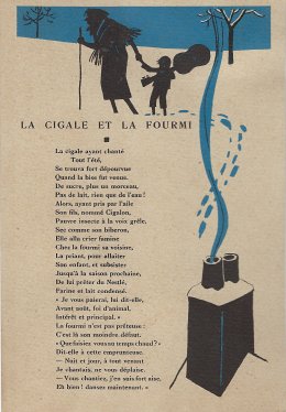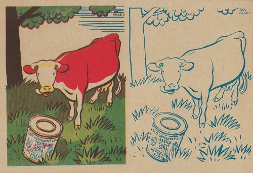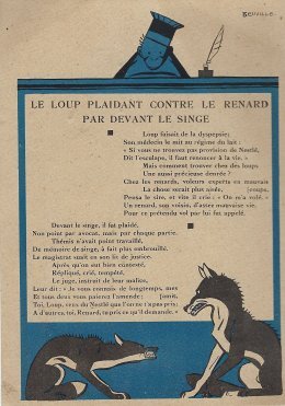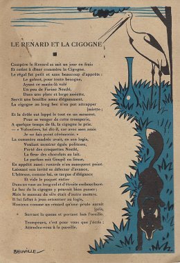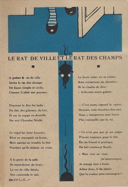 1925? Twelve Nestlé trade cards, all advertising a contest worth a million francs in prizes. Most involve some connection with La Fontaine’s fables. Seven are signed “Beauville.” The others have no signature. 4¾” x 7”. Ten are blue duochrome. £12 from 123colis123colis through Ebay, August, ’21.