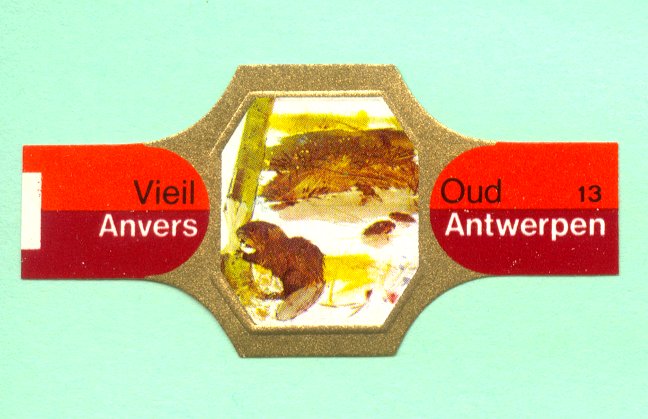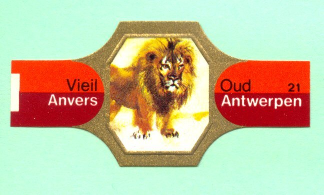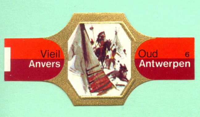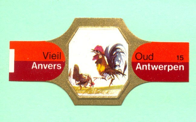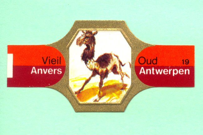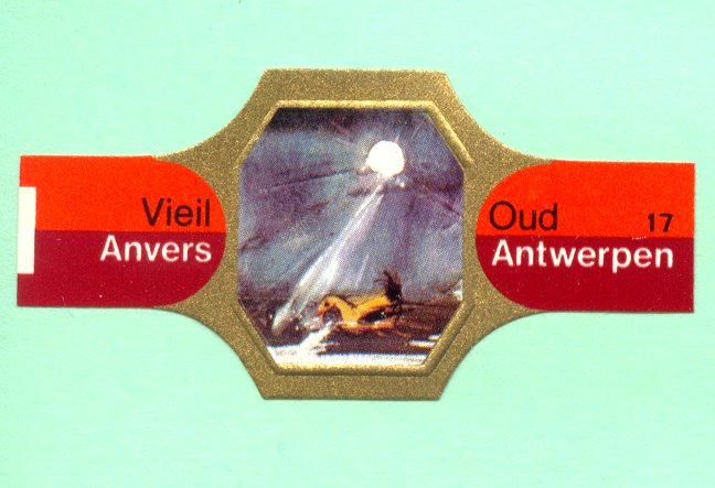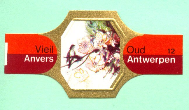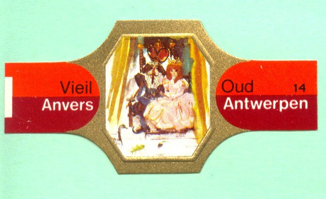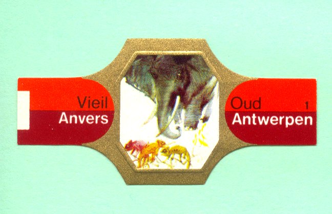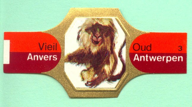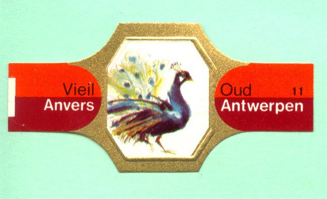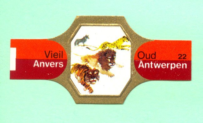 1960? Complete set of 24 paper cigar bands from Verellen, Vieille Anvers in mint condition. 1 3/16" x 7/8". The bands are two shades of red, and frames for the colored illustrations are gold. The subjects are animal stories including fables. $18.55 from Andre Prenger at The Holland America Cigar Band and Label Store, Amsterdam, through Ebay, July, '99.