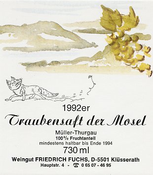 1992 Three identical wine labels "1992er Traubensaft der Mosel, Müller-Thurgau." From the vineyards of Friedrich Fuchs in Klüsserath. Gift of Friedrich Fuchs.