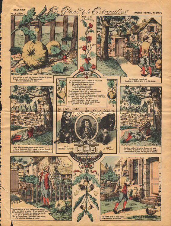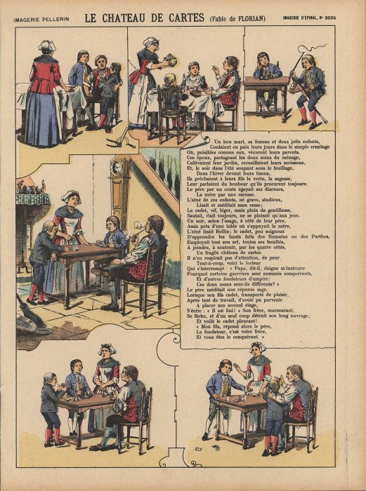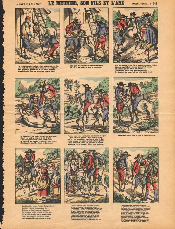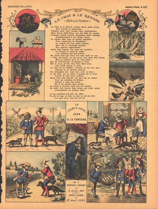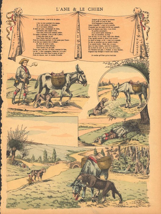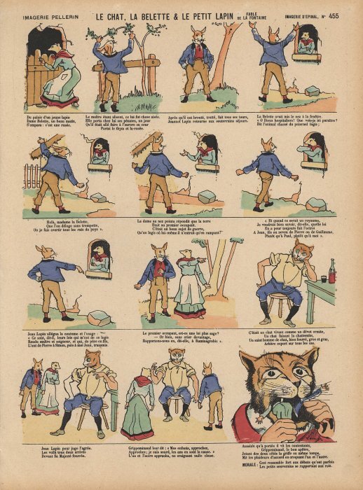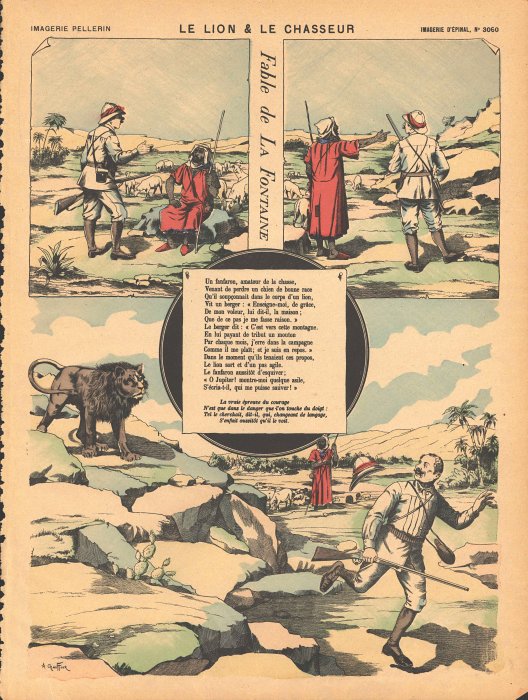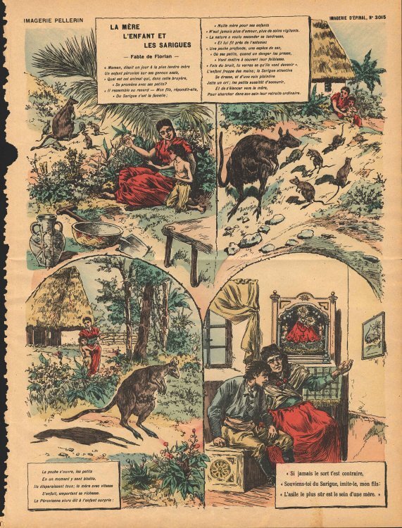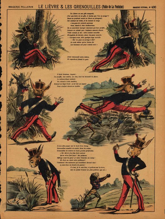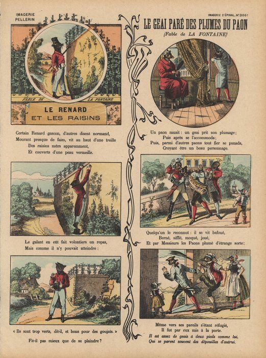 Some of these broadsides look more like pages torn from a book, and one can find those Pellerin books scattered through the collection. Several are duplicates bought in different groups. As with the illustrations in earlier Pellerin book publications around 1910, each broadside here is numbered either between 400 and 455 or between 3007 and 3088. - Source