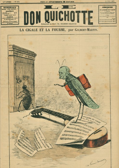 1887 “La Cigale et la Fourmi.” Ch. Gilbert-Martin.Don Quichotte. No. 673. May 14, 1887. Unknown source.