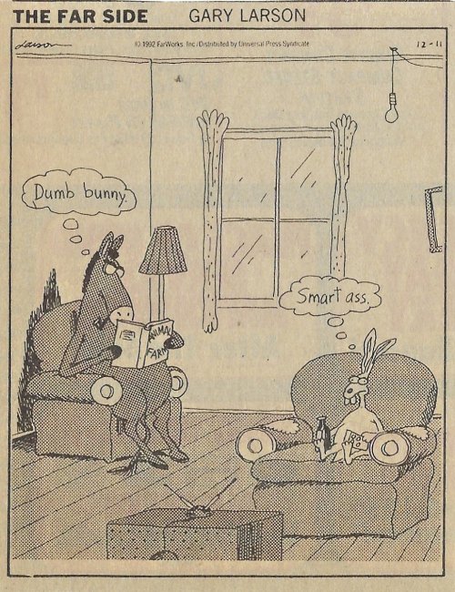 Far Side Cartoon “Dumb Bunny Smart Ass.”
