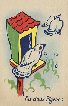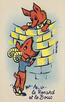 1960? Four trade cards advertising "Glucalcium à la Vitamine C Infantile" from Laboratoires Clevenot in Nogent-sur-Marne. "Fox and Goat"; "Two Doves"; DW; and TH. 3½" x 5½". €16 from Akpool, Feb., '19.