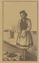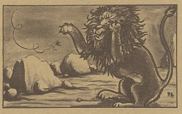 1920? Twenty-two monochromatic cards depicting fables of La Fontaine. Jubilé: "Garantit la Qualité – Waarborgt de Kwaliteit." Slightly larger than 2" x 3¼". The cards came in corners placed on loose 6¾"x 9¼" album sheets, with titles apparently cropped from the backs of identical cards. $20 from Dany Wolfs, Roesalare, Belgium, August, '00.