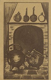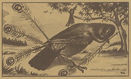 The cards are tan, and the ink is a brownish black. The designs--many of which are signed "P.S."—seem rudimentary to me. There is enough of the scene to understand what is taking place, but little interpretation or wit expressed. The verso contains the Jubilé logo and motto at the top and the title and a moral at the bottom. - Date