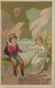 - $50 from Carlos Rodrigues, Montigny les Cormeilles, France, through Ebay, May, '22. Earlier 8 cards (plus one cropped extra of "Le Gland et la Citrouille") showing children in scenes from fables of La Fontaine, Florian, and perhaps others. A golden sky marks each of these cards. All but one credit as printer H. Laas, 16, rue Pierre-Levée, Paris. Eight cards for $40 from Bertrand Cocq, Calonne-Ricouart, France, March, '01. One cropped card for 40 Francs from Annick Tilly, Clignancourt, August, '99.