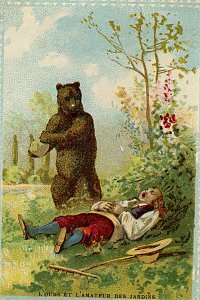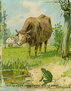 - wo additional cards in St. Ouen for €10, June, '19, printed by Alice Picard without advertising, just the fable text on the verso. These two seem to have a different formatting for the fable title on the front of the card. The eight papers for $40 from Bertrand Cocq, Calonne-Ricouart, France, March, '01. HC for 45 Francs and ELR for 50 Francs from Annick Tilly, Clignancourt, August, respectively, of '99 and '01. Additional papers for €2 apiece at St. Ouen, August, '13. "Blind Man and Dog" for €5 from Bertrand Cocq, Sept., '20. GGE and "The Countryman and the Serpent" for €15 each from Albert von den Bosch, Jan., '23. One extra card of ""The Countryman and the Serpent" advertising A la Belle Jardiniere chicoree at C. Berliot in Lille for €1 from pier-mont through Ebay, Sept., '23.