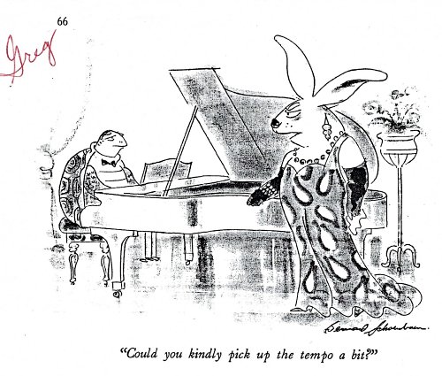 1992 “Could you kindly pick up the tempo a bit?” Bernard Schoenbaum. New Yorker. March 2, 1992. Xerox copy. Unknown source.