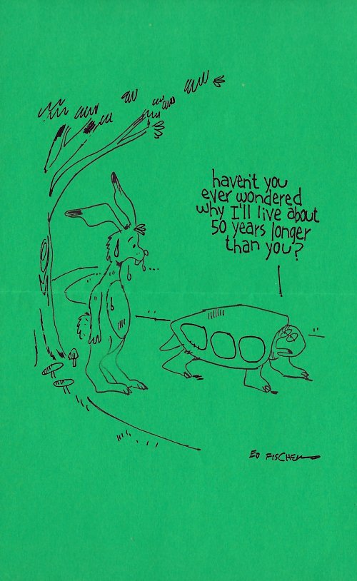 The hare in this cartoon is sweating profusely. TH is so well known that it can be turned into cartoons touching on many facets of life. - Date