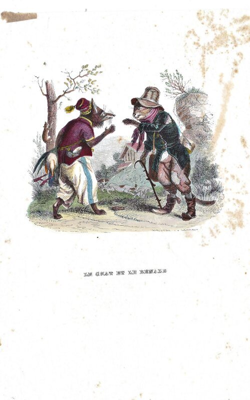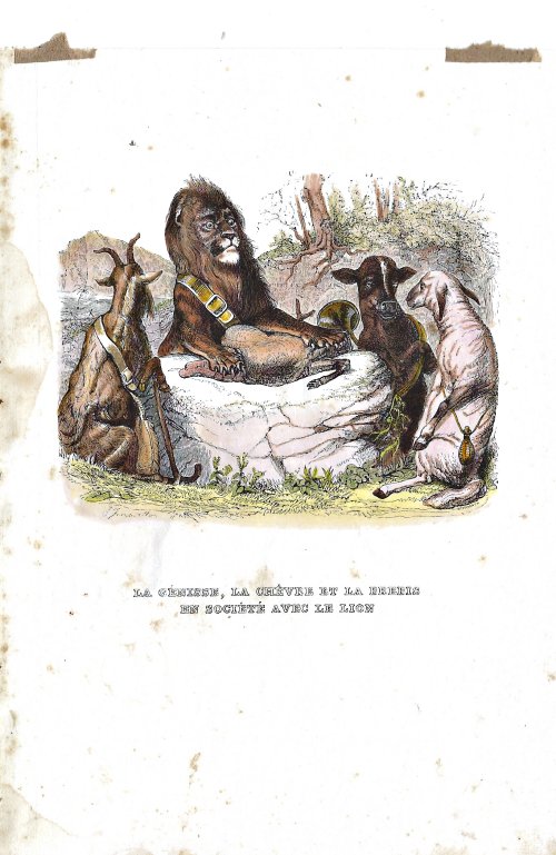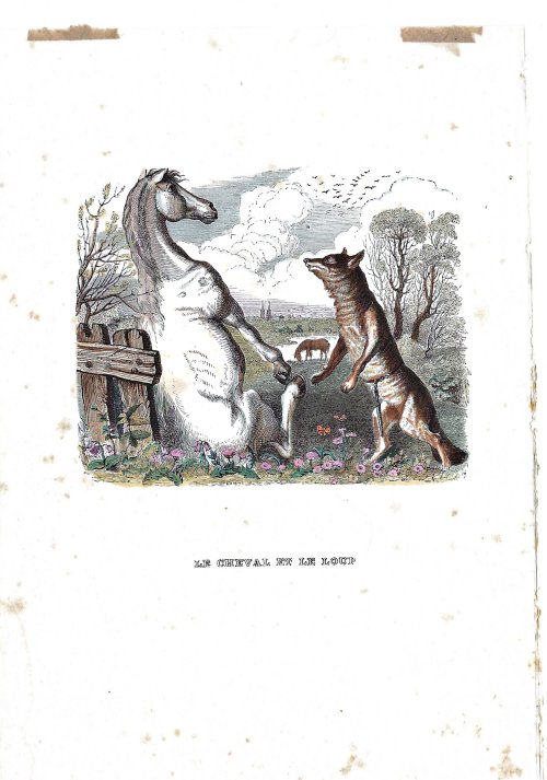 1838? Four hand-colored illustrations of La Fontaine’s fables by J.J. Grandville. 5.6" x 7.6". Unknown source.