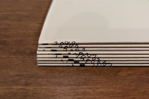 Our first galleys! From one of my earliest and most favorite fable books! The set is complete, 8 numbered signatures, each with a progressive mark of its place in the text and all with the number “2082. Notice these markings in the photo below. Each signature has 4 large pages folded in half to produce 16 pages 7” x 9.7”. - Date