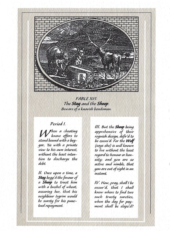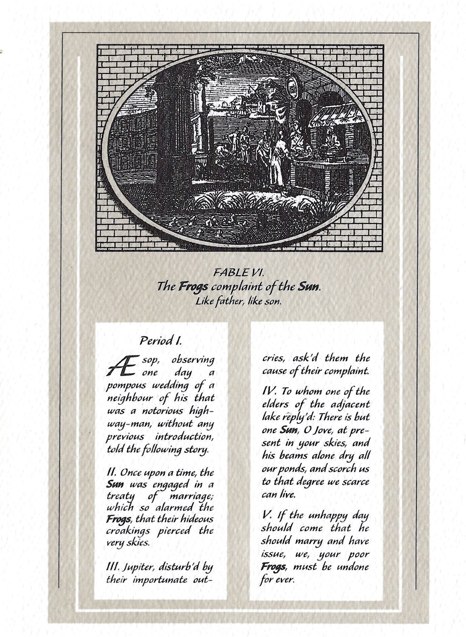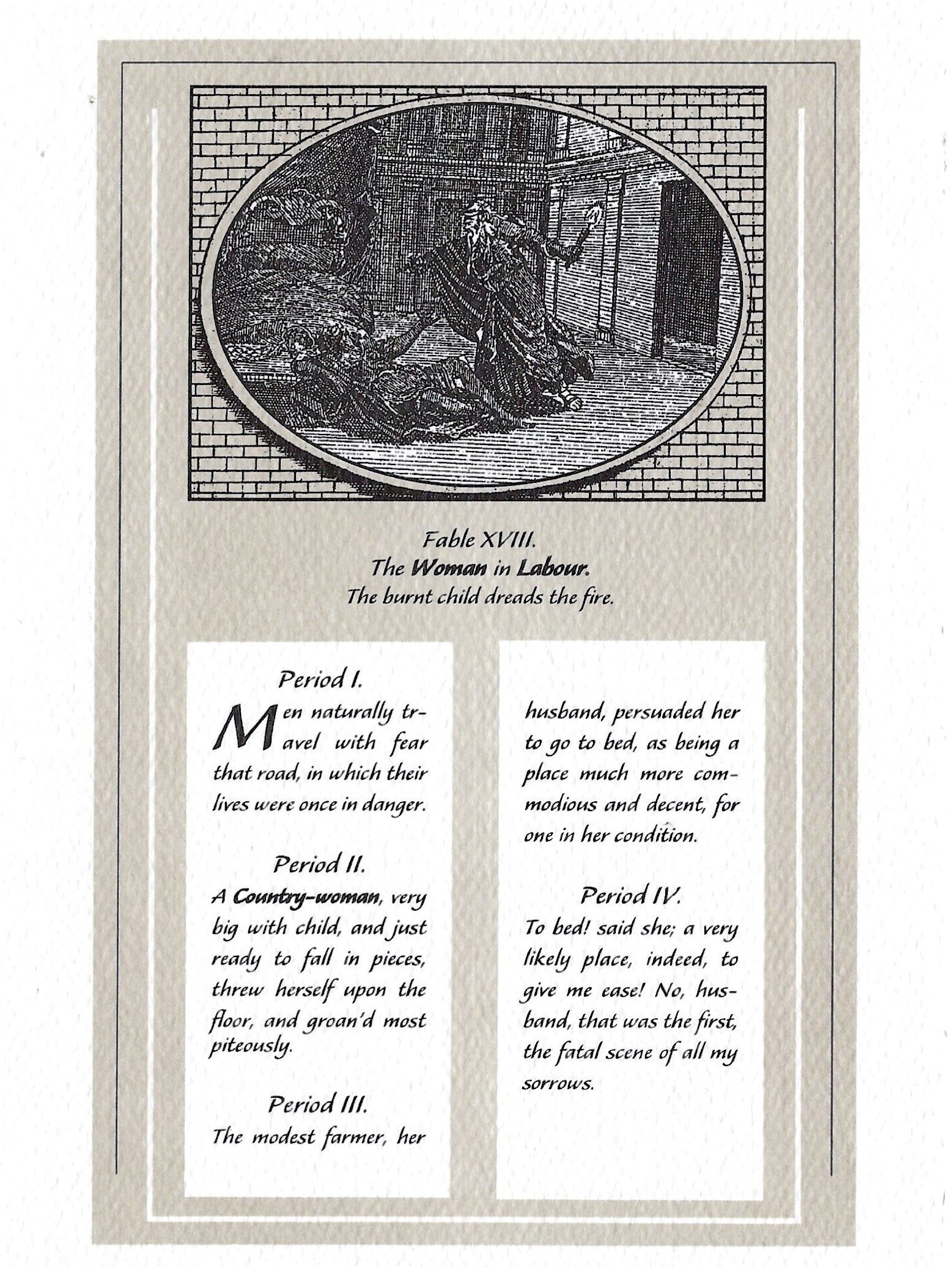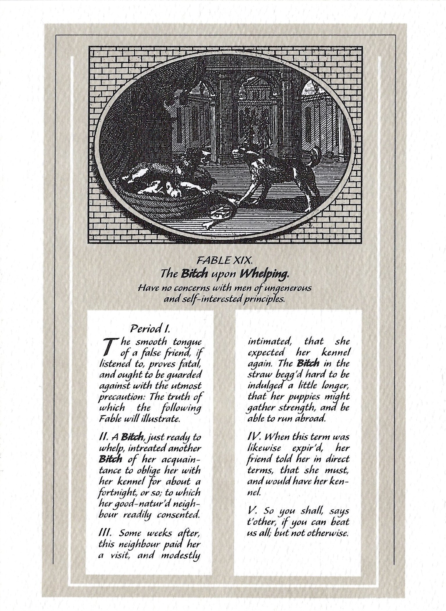 2017 12 Notecards by Redwood Library and Athenaeum Presenting Images and Texts from Phaedrus. Illustrations engraved by B. Cole from 1734 “Phaedri Fabulae Selectae, Latine, Anglice, Gallice.” Newport, RI. Unknown source.