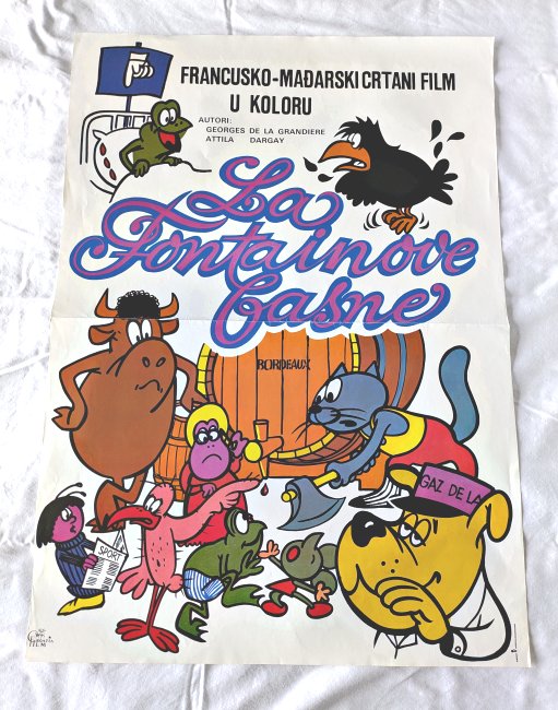 2000? Croatian advertising poster for “French-Hungary Color Cartoon Film: La Fontaine’s Fables.” Georges de la Grandiere and Attila Dargay. Croatia Film. 19.5” x 27”. Printed by Kjesnik Marketing Agency.