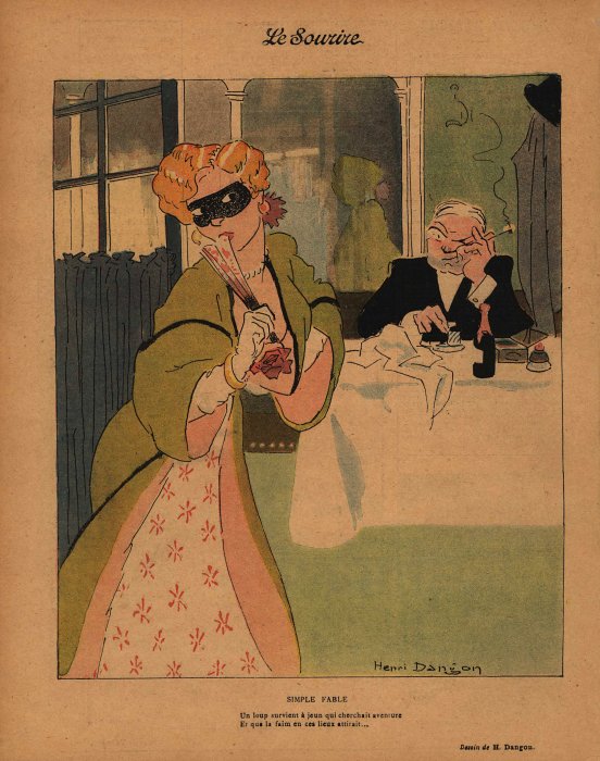 1899 "Simple Fable." Dessin de Henri Dangon. Back cover. Le Sourire No. 440, April 4, 1908. 9½" x 12". €10 at Clignancourt, July, '19.