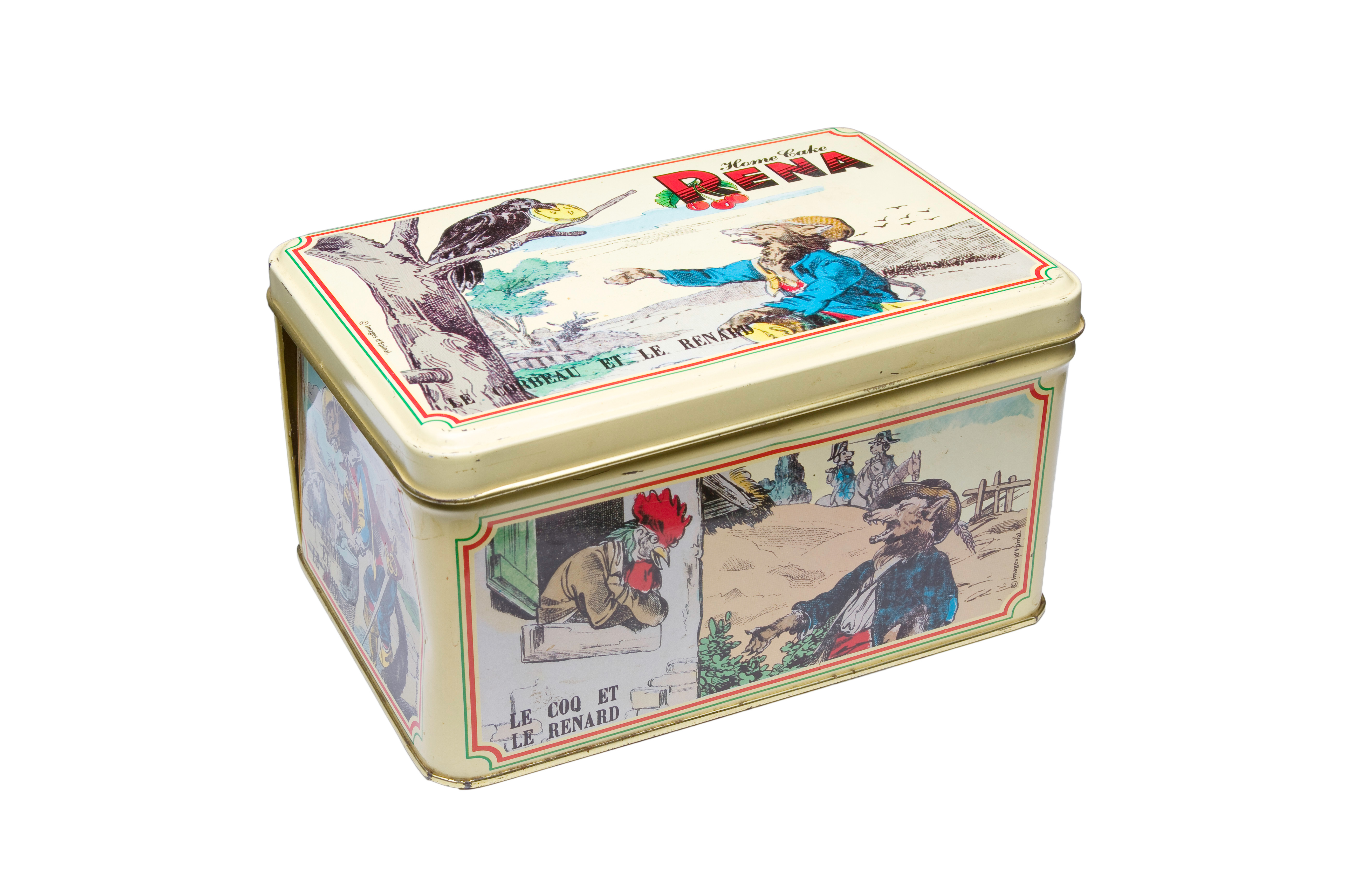 - Rena French cake tin. Conception Fusion. Copyright Images d'Epinal. 7" x 5" x 3½" high.