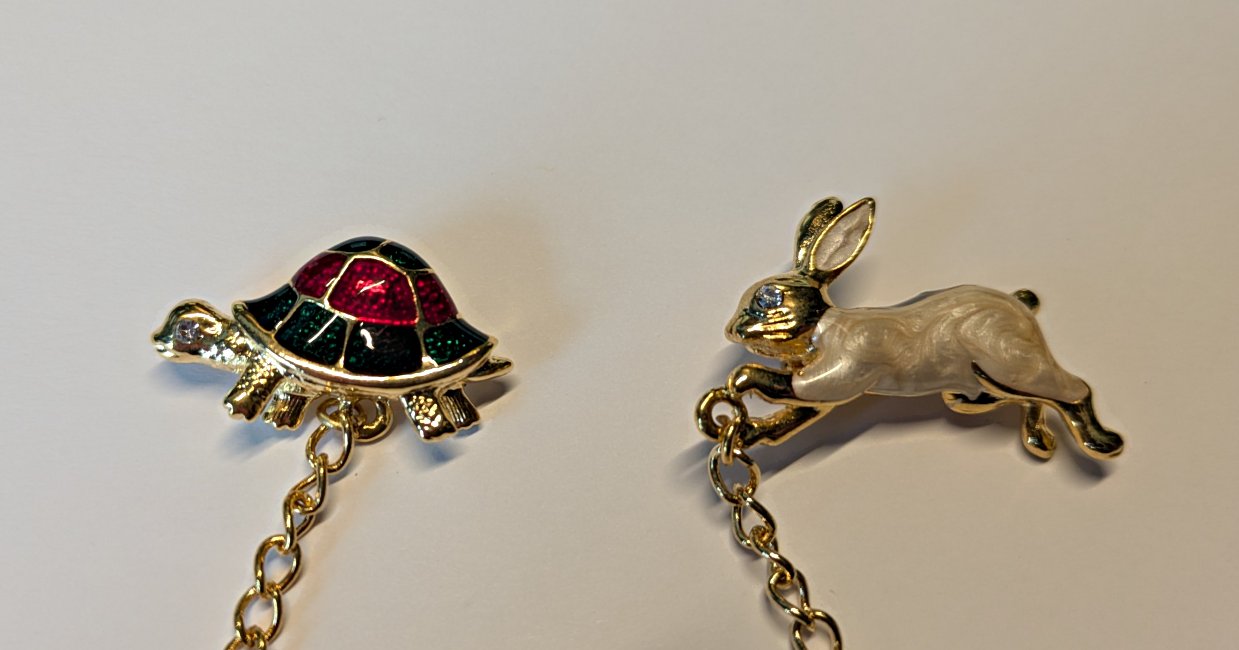 Tortoise and hare pins