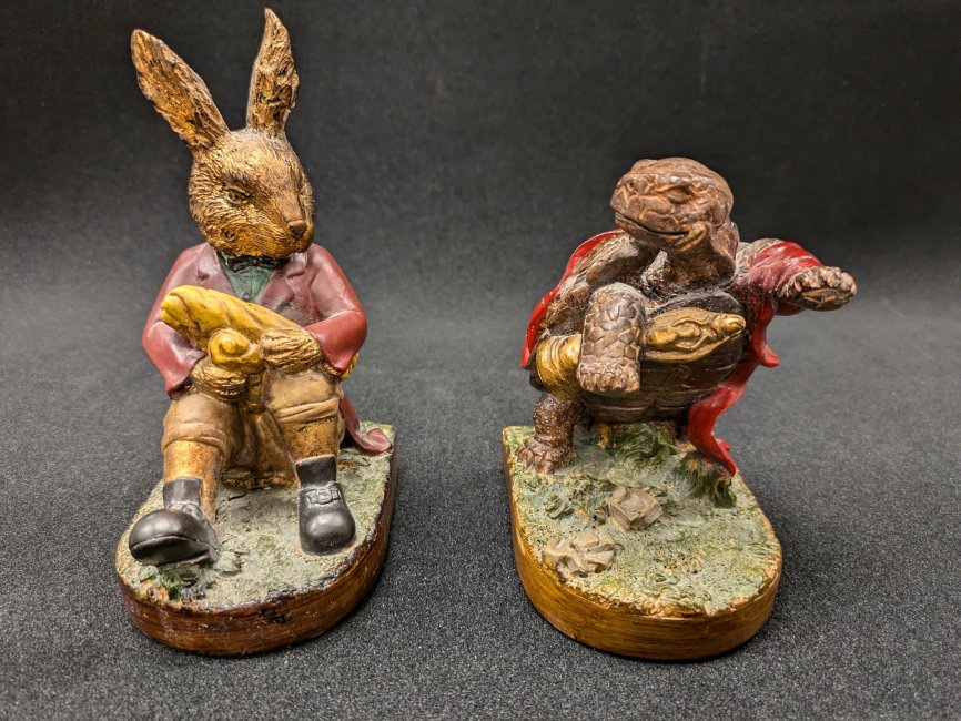 1920? Pair of TH sculptures. 6" high. Resin. Hand painted. Sterling Industries? $25. Unknown source and date.