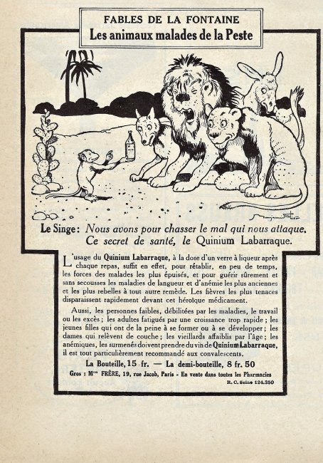 Animals Sick in the Plague: The monkey's advice: "To cure what ails us, we need to take Labarraque Quinine." - Source