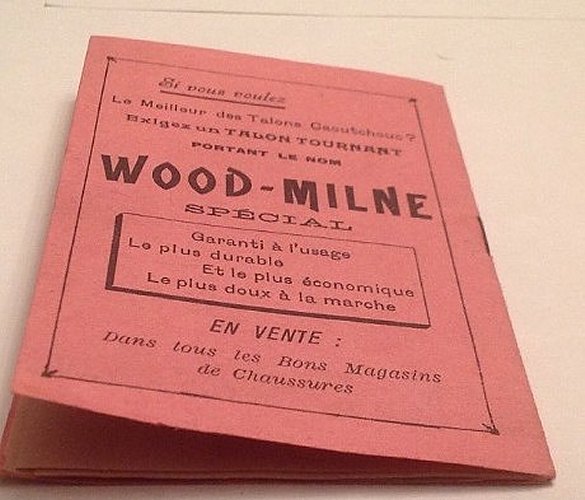 1900? Two frictographic advertising pamphlets for Wood-Milne, an apparent manufacturer of rubber shoe heels. "Les Fables de La Fontaine." $100 from Bertrand Cocq, Calonne Ricouart, France, Sept., '18.
