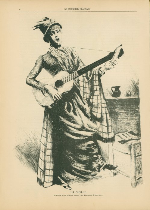 1886 Le Courrier Français, July 18, 1886: La Cigale. $10 from journauxanciens through Ebay, Feb., '24.