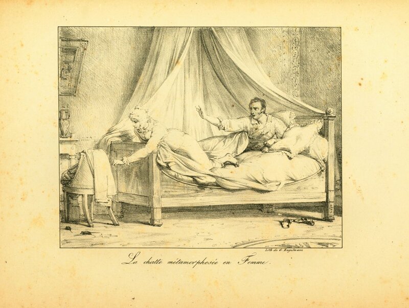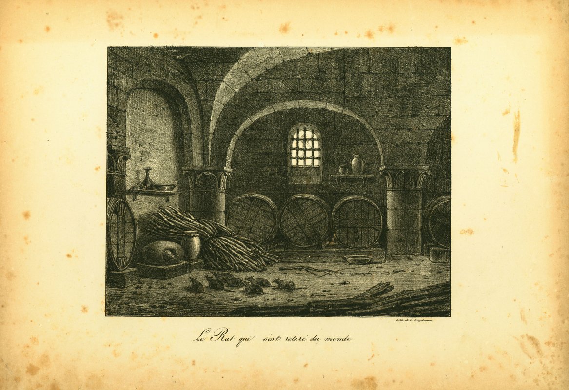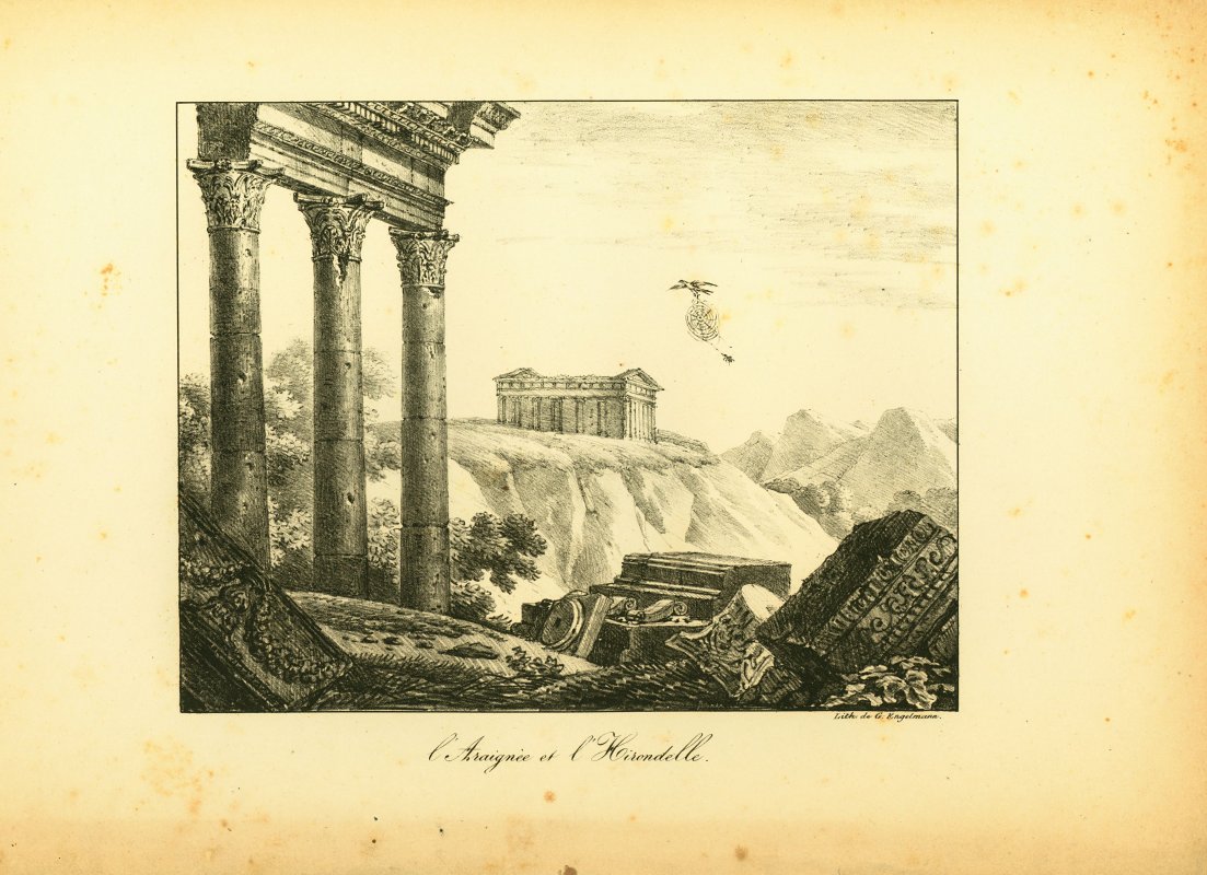 Engelmann seems to be the engraver for many of these. I have assigned him authorship for those not signed by LeComte or Vernet. These seem to be pages from a book in our collection, "Fables choisies De La Fontaine ornees de figures lithographiques" from 1818, published by Engelmann. - Date